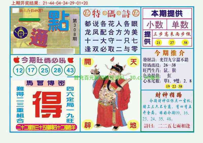 311期:男女两肖╠男肖+鸡╣开:蛇37准